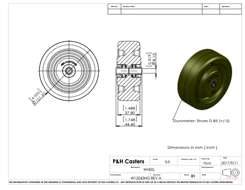 Rueda de Poliuretano 4” x 1-1/4” con Eje de 5/16”